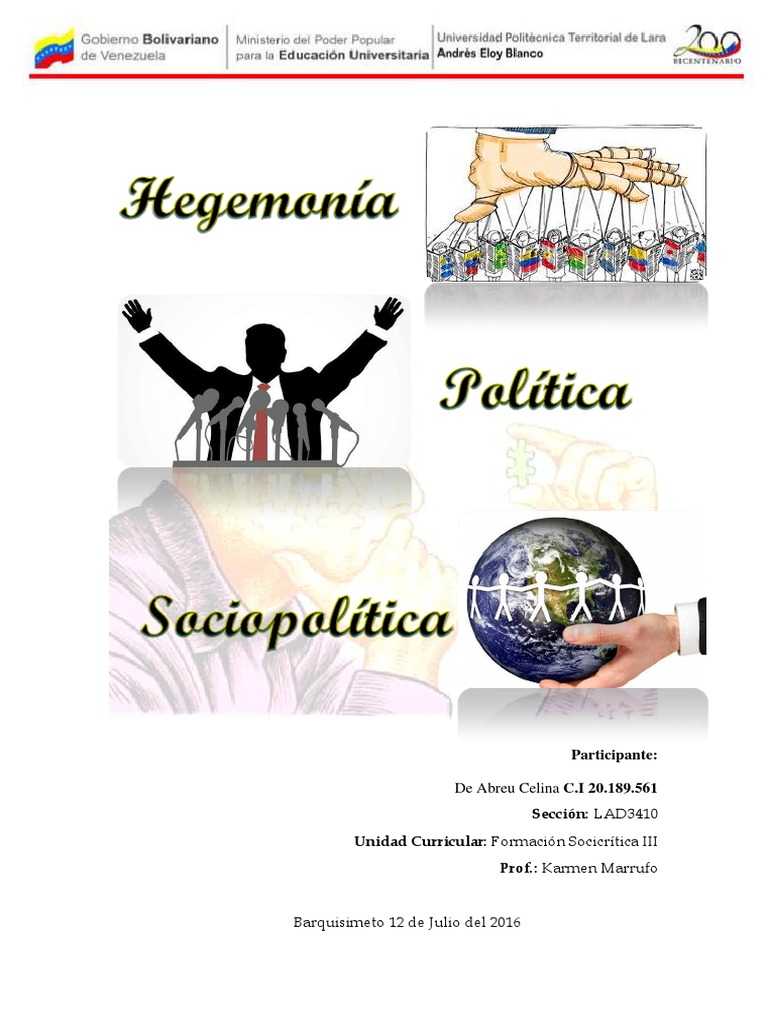 El concepto de hegemonía cultural fue desarrollado por el filósofo marxista antonio gramsci a fin de explicar cómo una sociedad aparentemente libre y. El pj extiende su poder y se quedó con la capital. Content may be subject to copyright. Hegemony is the political, economic, or military predominance or control of one state over others. Hegemonia — панування, керівництво) — панівні позиції певної політичної сили, соціальної групи, класу, нації, держави, які дають змогу їм монопольно контролювати розподіл.
